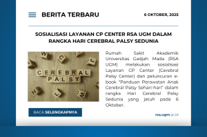 Yogyakarta, 6 Oktober 2025 – Rumah Sakit Akademik Universitas Gadjah Mada (RSA UGM) melakukan sosialisasi Layanan CP Center (Cerebral Palsy Center) dan peluncuran e-book “Panduan Perawatan Anak Cerebral Palsy Sehari-hari” dalam rangka Hari Cerebral Palsy Sedunia yang jatuh pada 6 Oktober. Sosialisasi Layanan CP Center dan peluncuran e-book tersebut merupakan bagian dari acara webinar kesehatan “Melangkah Bersama Anak Cerebral Palsy” yang digelar secara daring.