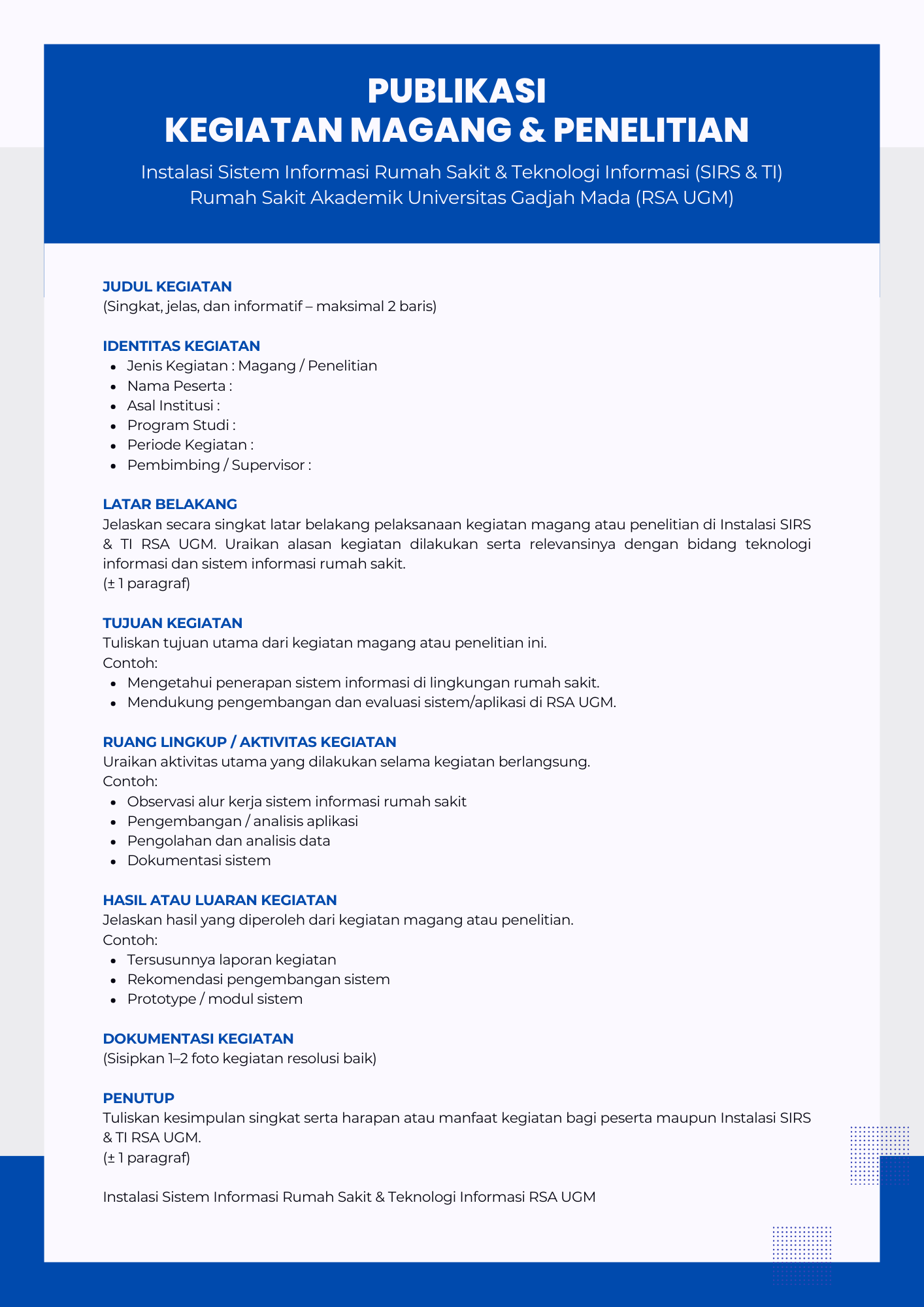 • Tata Tertib Publikasi Kegiatan Magang dan Penelitian SIRS & TI RSA UGM